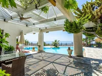 Diese luxuriöse exklusive Villa befindet sich in einer ausgezeichneten und sehr prestigeträchtigen Hochlage in Agios Tychonas. Die Villa befindet sich auf einem Hügel direkt an der Hauptstraße von Limassol, gegenüber dem Four Seasons 5 Star Hotel. Blick auf die Stadt Limassol und mit Panoramablick auf das Meer. Es ist nur 10 Minuten Fahrt zum Stadtzentrum von Limassol und nur 2 Minuten zum Strand.