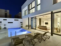 Im Obergeschoss finden Sie ein Hauptschlafzimmer mit privatem Balkon mit Blick auf den Pool ein eigenes Bad, mit zwei weiteren Schlafzimmern, die ein Familienbad teilen. Ausgang zu einer vollen Außentreppe bis zum 8.8 m x 4.4 m Dachgarten, komplett mit Grill und Naßbar.