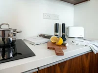 Auf der Rückseite des Gebäudes wurde ein sicherer Garten und Kinderspielplatz für die Nutzung der Familien der Eigentümer entworfen.