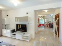 Das Innere der Villa ist stilvoll und zeitgemäß und bietet helle und luftige offene Wohnbereiche. Die Liebe zum Detail ist überall mit den qualitativ hochwertigen italienischen Kücheneinheiten, üppigen Marmorbädern und Marmor oder Parkettboden überall sichtbar. Der beeindruckende Eingang öffnet sich in den geräumigen Wohn-/Essbereich mit französischen Türen, die sich auf die Poolterrasse öffnen. Die Lounge ist wunderschön mit einem Plüsch-Sofa und einem Sessel, einem großen Flachbild-TV und zauberhaften Accessoires wie dem Designer-Kaffeetisch und kontrastierenden Wandkunst ausgestattet. Der angrenzende Essbereich mit modernem Esstisch und Stühlen ist von der Küche durch ein handliches Sideboard getrennt. Die Küche ist mit stilvollen Hochglanz-Einheiten ausgestattet, darunter Elektroherd und Herdplatte, integrierter Geschirrspüler, Waschmaschine und Mikrowelle. Das Erdgeschoss verfügt auch über eine bequem gelegene Garderobe.
