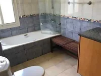 Im ersten Stock befindet sich ein Hauptschlafzimmer mit einem Spaziergang im Schrank und einem eigenen Bad. Dieses Zimmer bietet Blick auf das Meer und die Stadt. Weitere zwei mittelgroße Schlafzimmer stehen in der gleichen Richtung mit einer großen gemeinsamen Veranda, die diese drei Schlafzimmer miteinander verbindet. Ein weiteres kleineres Schlafzimmer und ein großes Badezimmer mit Jacuzzi ist im ersten Stock dieser Immobilie enthalten.