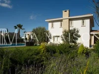This exclusive house combining elegant style and is located in one of the best areas of Nicosia. It boasts an impressive entrance, a big living/dining room, a separate kitchen with day room and a guest WC on the ground floor. A covered veranda opens up to the patio and outside big garden featuring mature trees, grass, and an overflow swimming pool (11 1/2X5) with barbeque area. 4 en-suit bedrooms upstairs.
