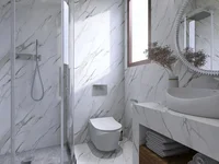 Marmor aussehende Porzellanfliesen in allen Badezimmerböden und Wänden