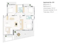 Wohnfläche: 122 m² + überdachte Veranda 21 m² | Gesamtfläche: 143 m² | 3 Schlafzimmer | 2 Badezimmer | Panoramablick auf die Berge