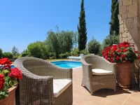 Stepping out of the living and dining rooms through the wonderful French doors, one will notice the gardens below that reflect traditional Cypriot landscaping, a very large swimming pool and a very spacious terrace and BBQ area to accommodate large gatherings when socializing. The garden offers mature trees and aromatic plants and shrubs.