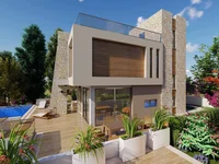 Looking at the property from the front, you see beautiful stairs leading you up to the entrance with an infinity edge swimming pool by its side with lots of patio area.