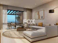 This ground floor two-bedroom apartment has been designed to offer the highest specifications, mesmerizing sea and sunset views. It comprises of an entrance, dining area, living area, kitchen, 3 bedrooms, 2 bathrooms and spacious covered and uncovered verandas. It also offers 32sq.m storage space, 6 sq.m mechanical room, 2 parking spaces, and communal swimming pool. The golden beach in front of the resort is the ideal place for watersports, playing in the sand and enjoying sunbathing.