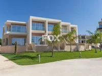 Apartment 108 is part of a prestigious hilltop resort development in Chloraka, Paphos. The resort offers modern Mediterranean-style architecture with natural stone, earthy tones, wood details, and tiled roofs.