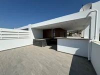 On the rooftop, residents can enjoy a relaxing jacuzzi while taking in panoramic views of the sea and surrounding area. The property also includes a large swimming pool in the garden, perfect for cooling off on hot summer days.