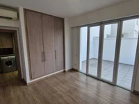 Die Wohnung verfügt über 15 m2 überdachte Verandas und 64 m2 unbedeckte Verandas, mit Blick auf den Dasoudi Park, das Mittelmeer und das belebte touristische Gebiet.