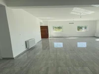 The villa has completed major construction works, including insulated and plastered facades, installation of entrance doors, windows and window sills, full internal wiring for all networks and communications, concrete floor preparation, and rough finishing of walls and ceilings. Externally, the property benefits from a concrete fence, swimming pool, concreted access roads, and a mature garden.