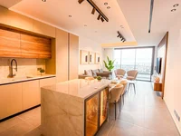 The apartment features a well-designed open-plan kitchen and living area equipped with VRV climate control, while underfloor heating ensures year-round comfort. It is offered fully furnished with designer custom-made furniture, creating a refined and contemporary living environment.
