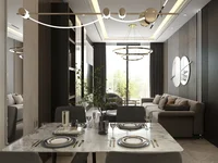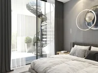 The one-bedroom apartment offers a comfortable and well-balanced layout designed for modern urban living. The open-plan living and dining area connects seamlessly with the kitchen, creating a bright and welcoming space for everyday life. Large openings allow natural light to fill the apartment, enhancing the sense of space.