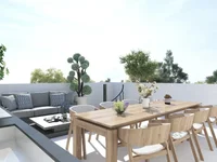 The bedroom provides a peaceful and private environment with enough room for practical storage and comfortable furnishings. A modern bathroom with quality finishes completes the interior, while the covered veranda offers an outdoor extension of the living area — perfect for relaxing or enjoying the Mediterranean climate.