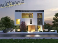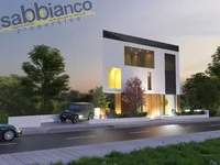 Modern four-bedroom detached house for sale in Lakatamia - Nicosia province, with 170 sq.m. covered interior, in 200 sq.m. plot. It has provision of electric shade blinds, main bedroom with en-suite, provisions for central heating and air conditioning, provisions for alarm system with cameras, provision for "smart Home", video intercom system, security door, covered parking, 90 sq.m. courtyard with garden and storage. The living room and sitting area are at street level, with the main living areas being at this level. At the same time, the space of 70 sq.m. at the lower level balances the desire of customers to interact with the natural environment but also to meet the need for privacy. Therefore, on this level are the 2 bedrooms, living room and kitchen. In the bedrooms will be placed a large glass so you can watch the idyllic environment of the lower space. On the upper level of the house will be the master bedroom with en-suite and big storage spaces. On the last level is the 4th bedroom where due to its clever design it provides complete privacy so that it can be used as a guest room and / or as an office. The house is within walking distance from all services. The geometric lines of the house are bold and unprecedented, which highlight the modern aesthetics. The house is energy efficient A. Sale price 260,000 euros plus V.A.T.