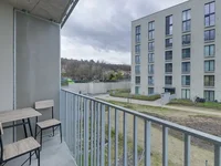Wir bieten zum Verkauf eine 2+kk-Wohnung im 2. Stock eines Gebäudes mit einer Fläche von 55,8 m2, einschließlich eines Balkons von 10 m2, in einem völlig neuen Projekt an