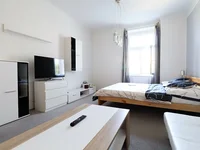Die Wohnung wurde 2018 renoviert. Die Wohneinheit mit einer Gesamtfläche von 45 m2 ist sehr hell und luftig, die Fenster sind nach Osten ausgerichtet. Der Innenbereich besteht aus einem großen Wohnzimmer mit einer neuen, voll ausgestatteten Küchenzeile und einem schönen Blick ins Grüne. Es gibt auch ein ziemlich helles Schlafzimmer mit einem Fenster mit derselben Aussicht. Alles ist durch einen großzügigen Flur verbunden, in dem sich eine Küche befindet und von dem aus man alle Zimmer erreichen kann, ein Badezimmer mit Badewanne und ein separates WC.