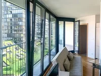 Wir bieten voll möblierte Apartments 1 + kk mit einer Fläche von 45 m2 + 11 m2 Terrasse, befindet sich im 6. Stock eines attraktiven modernen Wohnprojekts mit Privatpark, 24-Stunden-Rezeption, Sicherheit, Aufzüge und Tiefgarage. Ein Kellerraum von 5,36 m2 ist an der Wohnung angebracht.