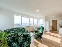der Verkauf der Wohnung 2+kk von der Fläche 59 m ² (aus denen 5,35 m ² die verglaste Loggia, und 2,69 m ² der Balkon), in den Wohnhäusern Bohdalec II. Neben dem Haus die Bus- und Straßenbahnunterbrechungen, das große Geschäft Kaufland, das sportliche Zentrum HAMR.