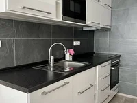Die IKEA Küche ist maßgeschneidert und mit dem eingebauten ( Geschirrspüler mit einer Breite von 60 cm, Mikrowelle, Haube, Kochfeld und Konvektionsofen ) ausgestattet. Der SIEMENS-Kühlschrank steht separat. Das Badezimmer ist mit einer Badewanne mit Bildschirm, Waschbecken, Waschbecken, LED-Rückspiegel, elektrischer Heizung ( der sogenannten ) -Treppe ausgestattet. Das Bad und die Toilette sind getrennt.