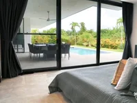 Entdecken Sie diese außergewöhnliche moderne Villa auf einem privaten Golfplatz, nur 250 Meter vom Playa Ballenas Strand in Las Terrenas, Dominikanische Republik.