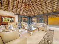 Genießen Sie Ihre Zeit in den offenen sozialen Bereichen unter dem Strohdach, einem außergewöhnlichen Pavillon, einem Essbereich im Freien, Grillmöglichkeiten, Chaiselongues und einem großen Swimmingpool, der Ihren Aufenthalt angenehmer macht.