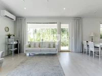 Die helle und helle Wohnung verfügt über vier Zimmer und große Fensterflächen. Die Wohnung ist sorgfältig gepflegt und es gibt keine Sorge über große Renovierungen. Die energieeffiziente Abluftwärmepumpe sorgt für die Heizung. Im Wohnzimmer befindet sich auch ein Kaminreservat. Zur Kühlung kann eine Luftwärmepumpe verwendet werden. Der Hof ist flaches Land und grenzt an Parkland. Die Wohnung verfügt über eine große, teilweise überdachte Terrasse. Sie können Ihr Auto bequem im Baldachin parken.