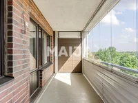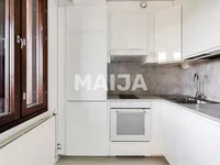 Neat Studiowohnung auf der obersten Etage mit einem verglasten Balkon die Breite einer großen Wohnung, die den nötigen zusätzlichen Platz zum Studio bringt. Vom Balkon aus sehen Sie den Pukinmäki Sports Park. Die Wohnung verfügt über eine gut gepflegte offene Küche.