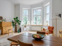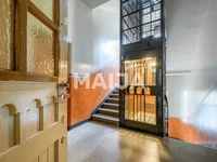 Penthouse apartment, bedroom on the side of the courtyard. Original details can be found, adding to the ambiance of living and the comfort of old-fashioned living. Modern kitchen makes everyday life easier.