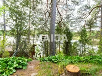The lake and river views from above enchant time and time again. Those who want light can open up the landscape by cutting down trees from the slope. In the main cottage there are two separate bedrooms, main room, kitchenette and dressing room/sauna. There is also a cabin at the beach sauna, where guests can be accommodated if necessary. Sold furnished and immediately free!