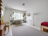 Die Wohnung verfügt über einen geräumigen Raum, in dem eine alkovenartige Ausnehmung auch ein Bett quer aufnehmen kann. Es gibt einen praktischen Platz für den Esstisch neben der Küchenzeile vor dem Fenster. Das Badezimmer hat Platz für eine Waschmaschine. Die Wohnung hat sowohl einen Keller als auch einen Dachboden.