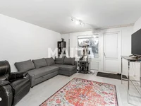 Im oberen Stock der Wohnung befinden sich zwei Schlafzimmer, ein Badezimmer und eine private Sauna – ein funktioneller und friedlicher Komplex für den Alltag und die Entspannung. Dank der Schränke oben gibt es viel Stauraum.