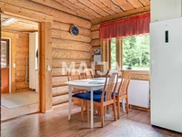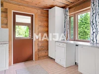 Die soliden log Strukturen im Obergeschoss schaffen eine gemütliche und warme Atmosphäre, ergänzt durch einen Backofen und Kamin. Das geräumige Wohnküchenzimmer dient als Herzstück des Hauses und die Raumlösungen ermöglichen eine flexible Nutzung – mehrere Zimmer sind für Schlafzimmer, Arbeitsräume und Hobby geeignet. Im Erdgeschoss befindet sich ein Zimmer mit eigenem Eingang, Wasch- und Saunaeinrichtungen und viel Stauraum und Werkstattraum.