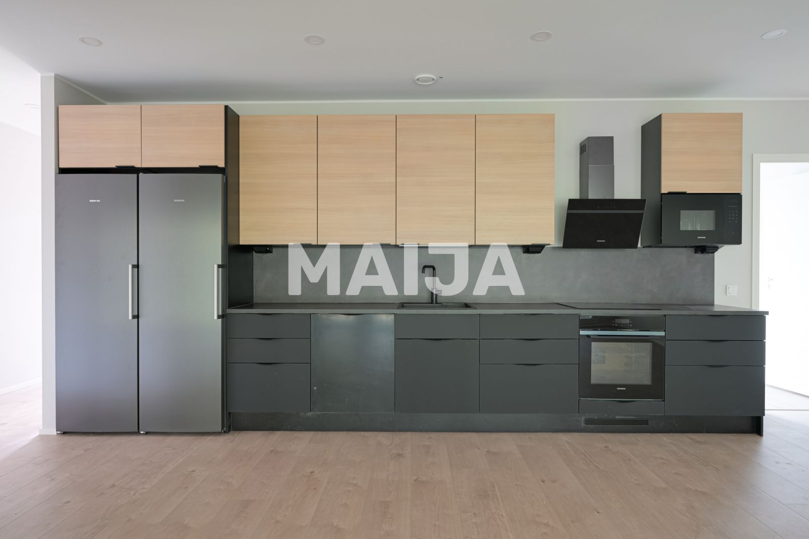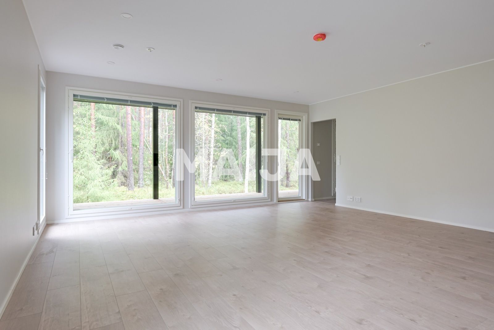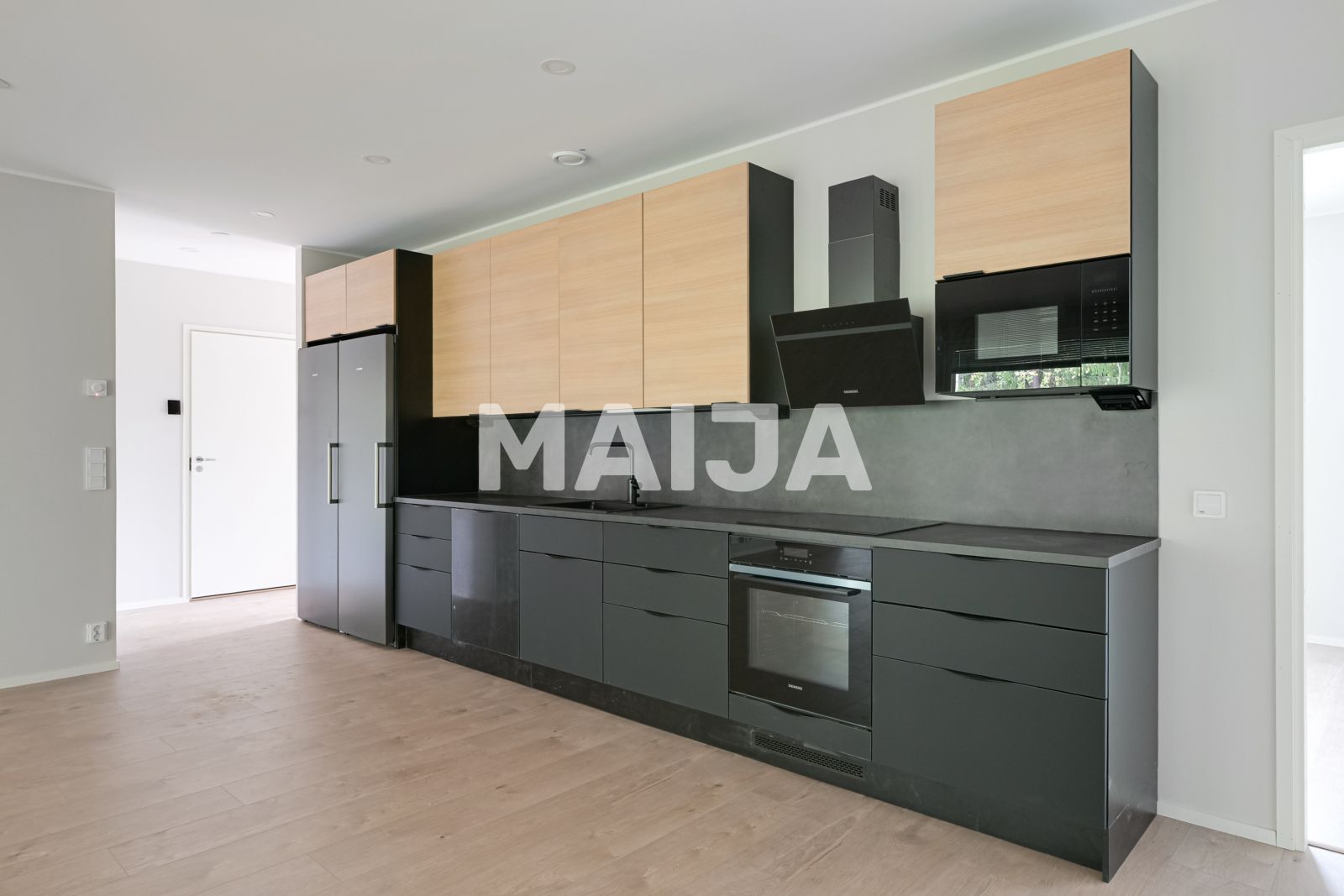 Nur fertiggestellte hochwertige 1-Level-Doppelhauswohnung auf einem eigenen Grundstück an der Grenze zum Park. Wunderschön geräumige Wohnzimmer-Küche Kombination und große Fenster in der Waldlandschaft. Die Wohnung ist in erdigen Tönen ausgeführt und von Luxus bis Herbst bringt eine sehr große Terrasse, die verglast ist! Die Toilette und das Badezimmer sind mit einer schönen Fliesen gefliest, und das Hauswirtschaftsraum hat viel Platz. Am Eingang zum Haus gibt es einen geräumigen, warmen Abstellraum, wo Sie leicht zu erreichen sind, zum Beispiel Wagen und Räder.