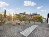 Die Wohnung befindet sich in der obersten Etage des Gebäudes - ein luxuriöses Penthouse mit einer Fläche von 240 qm. Die Terrasse mit Walddekorateur ist nach Süden ausgerichtet. Die Terrasse ist mit einer mit der Küche verbundenen Servierluke, zwei Überdachungsdächern, einem Waschbecken, einer Dusche, einer Sprinkleranlage und viel Platz für einen Spielbereich und einen Whirlpool ausgestattet. Die Wohnung bietet eine geräumige offene Küche, ein großes Esszimmer, 50 qm. Wohnzimmer mit modernem Heizofen. Hauptschlafzimmer mit Hamam-Dusche, Whirlpool-Badewanne und begehbarem Kleiderschrank, 2 andere Schlafzimmer, die mit einem Badezimmer mit italienischer Dusche und Doppelwaschbecken verbunden sind, Abstellräume und ein Waschraum vervollständigen dieses Apartment