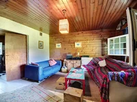 Das Haus ist im Chalet-Stil gebaut: mit Holzverkleidung außen und Verkleidung in allen Räumen innen, was ihm ein sehr warmes Gefühl verleiht.