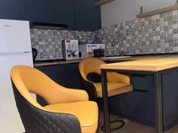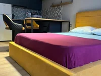 Ein komplett fertiggestelltes Studio steht zur Miete oder zum Wohnen in vielversprechender Lage am New Boulevard zum Verkauf. Neuer Komplex. Designer-Renovierung, alles Lebensnotwendige, Möbel und Haushaltsgeräte (großes, bequemes Doppelbett).