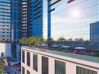 - Hochhausarchitektur mit Panoramablick auf das Meer und die Berge