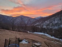 The nearest neighbors live about one kilometer away, offering total privacy and silence. You live surrounded by pure nature — mountains, forests and open skies. The area is rich in wildlife: large herds of cows and sheep regularly pass by, and the property is home to many birds, butterflies and small forest animals. We sometimes spot foxes, and in the wider area, even wolves and bears live, a true sign that you’re in the heart of the Georgian mountains. Occasionally, cows come to graze on the property itself, adding to its rural charm.