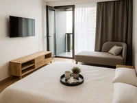 Verkauft wird ein geräumiges Studio im Blue Sky Tower mit herrlichem Blick auf die Heldenallee. Die Wohnung ist vom Bauherrn repariert. Das Studio ist komplett mit Möbeln und Haushaltsgeräten ausgestattet. Um die Infrastruktur herum entwickelt: Die Heldenallee, viele Geschäfte und Restaurants. Bis zum Meer — 5 Minuten zu Fuß.