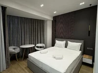 Verkauft wird ein geräumiges Studio in hellen Farben mit Meerblick.