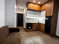 Zu verkaufen ein modernes Studio mit einer neuen Renovierung in einem der beliebtesten Wohnkomplexe von Batumi - NBG Beach Panorama. Die Fenster überblicken die Berge.