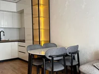 Die Wohnung ist voll ausgestattet mit Ausrüstung führender Weltmarken. Während der Reparatur wurden hochwertige Materialien verwendet, Schall und Abdichtung durchgeführt, und Zwangslüftung wurde installiert, was das Auftreten von Feuchtigkeit in der Regenzeit verhindert.
