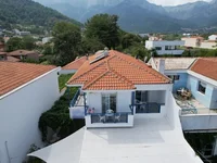 Es besteht aus drei Gebäudeeinheiten. Vorne befindet sich ein 1997 gebautes zweistöckiges Gebäude mit einer Gesamtfläche von 227 qm. Im Erdgeschoss, mit einer Gesamtfläche von 110 qm, gibt es ein Café mit Tischsitzen im Innenhof. Auf der oberen Ebene gibt es fünf Ein-Zimmer-Wohnungen, von denen drei sind an der Front und haben unbegrenzte Meerblick und die beiden auf der Rückseite Blick auf den herrlichen Ypsario Berg.
