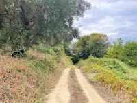 Der Zugang ist an einer Landstraße. Das Grundstück beginnt vom Boden dieser Straße und geht bergauf.