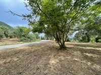 The access is by an asphalted road. A part of land is even and has a few old constructions without roof on it, and further down the land has a sloping landscape and a view of the valley.