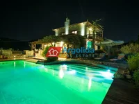 ID Immobilien: 581342 - Galataki, Einfamilienhaus durchgehend im Erdgeschoss ZU VERKAUFEN Wohnfläche von ca. 285 m2, im Erdgeschoss. Besteht aus 5 Schlafzimmer, 2 Wohnzimmer, 2 Küchen, 3 Bäder , WC. Wurde im Jahr 2009 gebaut und im Jahr 2009 renoviert. Verfügt über Heizung: Individuell - Gas, Blick auf den Wald, Fenster und Türen: Holz, Parkplatz, Lager, Garten, Kamin, Pool, Klimaanlage, möbliert - eingerichtet, hell, Solar Boiler , gestrichen, Balkons 50 m2 - Kaufpreis: 500.000 € Ganz in der Nähe von Korinth, in den Bädern von Oraia Eleni und neben der Siedlung Galataki, einem bioklimatischen Einfamilienhaus von 285 qm. von erstaunlicher Qualität und Spezifikationen steht zum Verkauf. Es besteht aus dem Haupthaus in 2 Ebenen von 130 qm. mit 3 Schlafzimmern, Bad, Wohnzimmer - Küche, Abstellraum und Fitnessraum, mit der Möglichkeit, als eigenständiger Raum zu fungieren. Das Erdgeschoss 100 qm mit Küche, 2 Wohnzimmer, Esszimmer, Bad und Schlafzimmer und im ersten Stock 55 qm. mit Hauptschlafzimmer mit Whirlpool. Draußen gibt es einen Pool von 50 qm. Betrieb mit biologischen Filtern (ohne Chlor), eine überdachte Grillfläche von 25 qm mit Grill und Holzofen, 4 weiteren Abstellräumen, extra Bad und WC. und andere überdachte Nebenbereiche. Die Installation von Photovoltaik, Obstbäumen, Wassertank, Kameras, Internet (Glasfaser) -Installation und Satellitenfernsehen in allen Häusern und Satellitenschüsseln auf dem Dach sind weitere Einrichtungen der Residenz. Das Haus ist möbliert und mit allen Elektrogeräten und Werkzeugen ausgestattet, die für den Innen- und Außenbereich benötigt werden. Das Grundstück ist von Pinienwäldern umgeben und liegt ganz in der Nähe der örtlichen Strände und des lokalen Marktes (3,5 km), Athens (90 km) und des Athener Flughafens (120 km). Ausrichtung: nach SüdostenProperty Manager: Spyros Galanis | Tel: - Mobile (whatsApp / viber): | Estate agency in Nafplio, Argous street 33, PC 21100 | www.argolida-realestate.com |