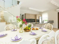 Nach der Einfahrt in die erste Etage finden Sie einen offenen Grundriss, der einen geräumigen Wohn- und Essbereich, eine voll ausgestattete moderne Küche und ein Schlafzimmer mit eigenem Bad umfasst. Schöne französische Türen öffnen sich zum Außenpool und zur Veranda, nahtlos vermischen Innen- und Außenwohnräume.