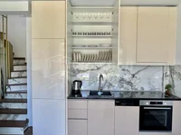 Es gibt 2 Etagen in der Villa. Das Erdgeschoss besteht aus einem großen Wohnzimmer mit einer Küche, einem Schlafzimmer und einem Badezimmer. Die 1. Etage besteht aus 2 Schlafzimmern und einem Badezimmer.