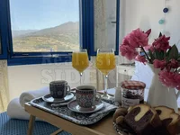 It has a large terrace with a panoramic view of Kampos tis Komi and in a natural landscape.